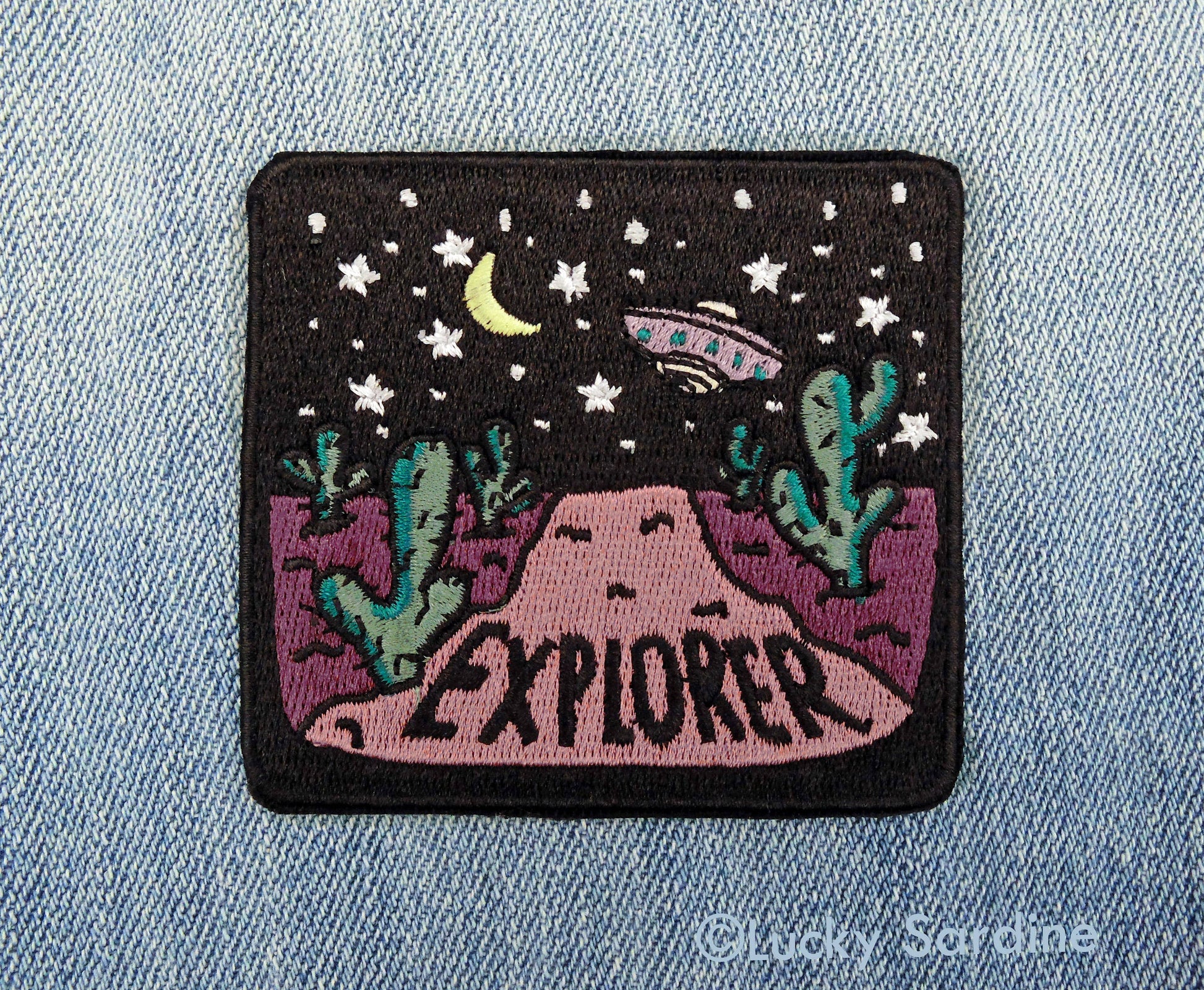 Desert Night UFO, Stars Explorer Embroidered Iron-On Patch