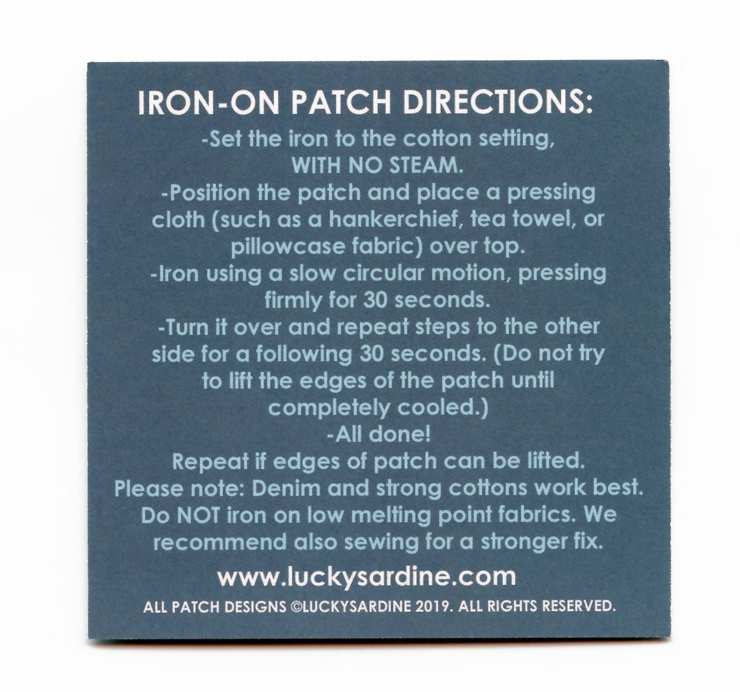 * Embroidered patch with an iron-on backing.